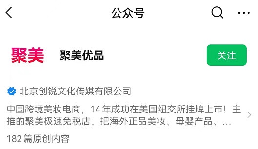 聚美优品微疑号显示,该品牌认证主体为创锐文化传媒有限公司。正在聚美优品官网上,异样也能够查询到创锐文化传媒有限公司的停业执照。
