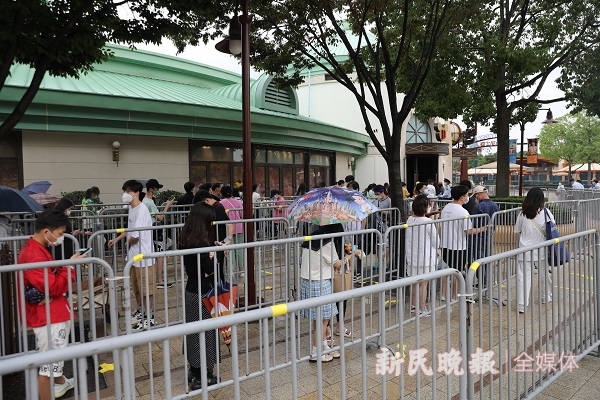 8时30总,上海迪士尼旅客泊车场曾经停了100多辆私人车。正在通往迪士尼小镇的天桥入口处,事情职员举着场折码牌,请每一位旅客扫码。