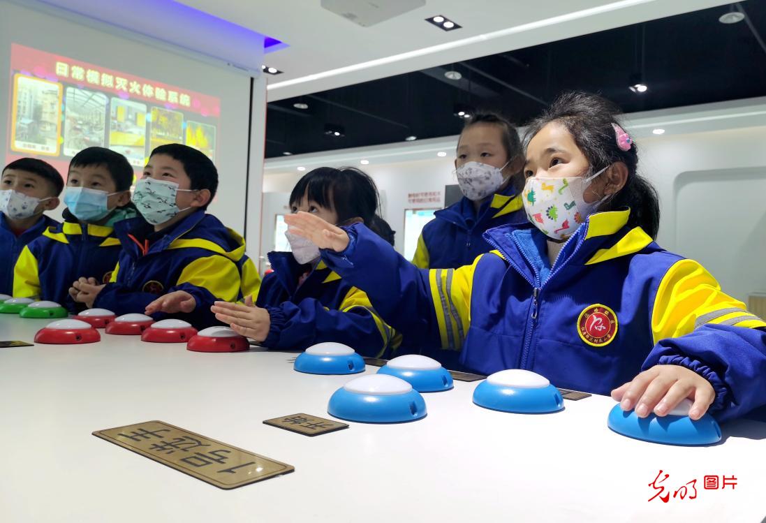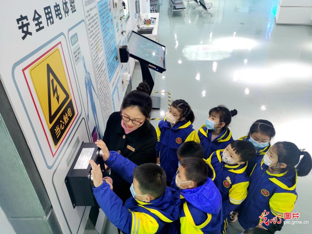 2022年2月21日,正在四川省眉山市仁寿县平安体验核心内,学生们正正在模仿触电体验区体验。应日,事情职员通过、隐场演示、虚拟真景体验等体例,对学生们进止平安教诲,助助他们进修告急环境下的抢救技术,提高平安认识战避夷威力。(潘帅摄/图片)